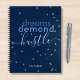 Dieses moderne Design besticht durch silberne Sterne auf marineblarem Hintergrund mit dem Text "Dreams Demand Hustle" in moderner Typografie mit Ihrem personalisierten Namen. Personalisieren Sie diese, indem Sie den Text in dem dafür vorgesehenen Textfeld bearbeiten. #positiv #modern #typografie #elegant #chic #staypositive #stars #silver #blue #dreams #hustle #notebooks #giftideas #stationär #stationär #onlineshop #notebooks #personalizedgifts #motivierend #motivate #ermutigen #personalized #personalified notebooks #journal #stationery #personalisierte #gift #giftsforher #modern #elegylish #feminline #feminline #ly #trendy #trendend #typography #Zuhause #office #work #school