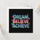 Erleben Sie eine hellere Einstellung mit dieser aufregenden Grußkarte "Traum, Glaube, Erfolge", die skurrile, farbenfrohe Schmetterlinge und motivierend Schriften enthält. Dieses fröhliche Kunstwerk ermutigt zur Achtsamkeit, zur Liebe des Selbst und zum persönlichen Wachstum. Es macht es zu einem perfekten Geschenk oder persönlicher Erinnerung, positive Bilder bleibe und gute Lebensbedingungen zu verbreiten. Dieses schmetterlingsinspiriert Design bringt Schönheit und Ermutigung in den Alltag.