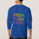 Dieser T - Shirt zeichnet sich durch ein schlichtes und dennoch leistungsfähiges Design aus, das mit den Worten "Träumen. Glauben Sie. Achieve.." in einem kühlen, modernen Schriftart über die Brust gedruckt. Der Text wird zentriert und durch einen dünnen, weißen Rand gerahmt. Der Hintergrund des T - Shirt ist hellblau, was ein Gefühl der Stille und Inspiration weckt. Das Gesamtdesign ist einfach und elegant, und es wäre ein großartiges Geschenk für jeden, der seine Träume verwirklichen möchte.