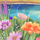 Dieses Aquarellwerk, handbemalt von Fantabuloustef, ist eine schöne und ruhige Landschaft, die ein Gefühl von Ruhe und Entspannung weckt. Im Mittelpunkt des Gemäldes steht ein stiller See, der den blauen Himmel, den Sonnenuntergang und die schneebedeckten Berggipfel reflektiert, die sich im Hintergrund erheben. Das Wasser ist ruhig und ruhig, seine Oberfläche ist ungestört. Im Vordergrund gibt es farbenfrohe Wildblumen in Rosa, lila, Blau und Gelb. Sie verleihen der Szene eine Touch der Lebhaftigkeit und schaffen ein Gleichgewicht mit den gedämpfteren Tönen von Bergen und See. Die Verwendung von Aquarellfarben ermöglicht eine weiche Farbmischung, die eine traumhafte Qualität der Landschaft schafft. Die Pinselstriche sind locker und ausdrucksstark, was das Gefühl der Bewegung im Wasser und den Wind einfangen lässt, der durch die Blume weht.