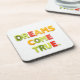 Ein fröhliches und lebendiges Design mit der Phrase "Dreams Come True" in einer spielerischen, fruchtigen Farbpalette. Der Text wird in einem kühnen, auffälligen Schriftart, umgeben von skurrilen Obstbildern, dargestellt. Die Gesamtkomposition ist leicht und optimistisch und ruft ein Gefühl von Freude und Inspiration hervor.