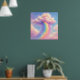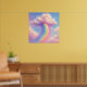 Kunstwerk einer Wolke mit einem Regenbogen, der in einem pastellfarbenen Malstil daraus hervorquillt. Dieses Design interpretiert das klassische Regenbogen-Symbol neu und macht es zu etwas Besonderem. Die zauberhafte Illustration zeigt eine flauschige, marshmallowweiche Wolke in träumerischen Rosa- und Lila-Tönen. Ein leuchtender Regenbogen stürzt wie ein Wasserfall herab und verstreut Staub und Glitzer in den Himmel. Die sanfte, pastellfarbene Palette aus Babyblau, Violett und warmen Gelbtönen schafft eine beruhigende und dennoch fröhliche Atmosphäre und ist somit die perfekte Ergänzung für ein Kinderzimmer, Spielzimmer oder Schlafzimmer.