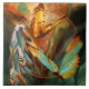Schmetterling, Geist der Umwandlung, Geschöpf der Metamorphose, zeigen Sie uns, dass das Wunder des Gesterns und heute WS, die wir wachsen und jeden Tag ändern. Und einige sagen, Sie sind die schönen Soule von denen, die weg überschritten haben und gehen zu uns an einem sonnigen Tag zurück. Diese Malerei des Goldes und der aquamarinen Schmetterlinge innerhalb eines Traumfängers, macht ein Inspirieren und ein Heilen Fliese der feinen Kunst. Von der Traumfängersammlung von Kunst durch Carol Cavalaris, ist dieser Entwurf auch als Kunstdruck verfügbar sowie auf anderen Produkten.