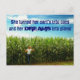Farbige Bleistift zeichnend von einer Frau, die in ein Maisfeld mit blauem Himmel rennen, mit dem Zitat "Sie verwandelte ihre Dosen in Dosen und ihr DREAMS in Pläne!"