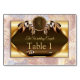 Ein Traum-Catcher-Design mit goldbraunen Zierleisten, die ein rundes Bambuskreisnetz mit braunen Federn und roten Perlen auf einem weichen Federhintergrund beinhalten, um für jede Quest auf dem Tisch Ihr ganz eigenes, stationäres Thema zu personalisieren.