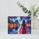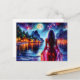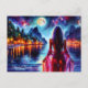Traumhaftes Strandmädchen mit Mond und Lichtern Postkarte