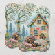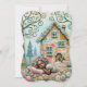 Ein junges Mädchen mit bunten Blume in ihren Haaren schläft friedlich vor einem skurrilen Haus aus verschiedenen bunten Papierschrotten. Bäume schwirren und blühende Blume umgeben die Szene und schaffen eine traumhafte Atmosphäre. Digitale Kunstfotografie CS5