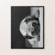 Schwarz-Weiß-Foto eines sehr bezaubernden kleinen Mops mit seelenbraunen Augen.