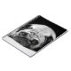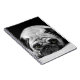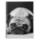 Schwarzweiss-Fotografie eines sehr entzückenden kleinen Mops mit soulful braunen Augen.