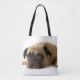 Nahen eines Mops mit einem schuldigen Ausdruck auf seinem Gesicht. Abgeschieden auf weißem Hintergrund.