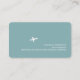 Elegant professional card with name (manuscript font style) and custom travel related occupation (travel agent) and the image of a small white plane with dotted line on a dusty blue background... and templates for address, email and phone at the back...