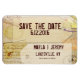 Reisen Thema in Creme und Bräune Hintergrund. Alte Karten, Postmarks, Briefmarke und Tags zieren diesen "Save the Date" Magneten der Hochzeit in Urlaubsort. Einfach zu ändern Save the Date Text mit Braut und Bräutigam Namen, Datum und Stadt. Ein paar Stile des Schriftartes gezeigt, inklusive altmodischer, nicht-script aber kann leicht geändert werden, um Ihren eigenen "Save the Date" Stil Anzug.
