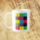 Magst du Musik-Tasse? Bist du Musiker? Diese Tasse hat ein bunt gefärbtes Muster von Treppenspalten aus Gelb, Blau, Grün, lila, Rosa und Schwarz.
