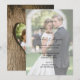 Eine wunderschön rustikale Hochzeitseinrichtung mit einem nahen Baumrink auf der Kartenrückseite. Die natürliche Struktur der Rinde und das warme Licht schaffen eine romantische und bezaubernde Atmosphäre, die perfekt für Hochzeiten im Freien oder im Wald geeignet ist. Auf der Vorderseite der Karte befindet sich ein weißes Gradientenblatt. Das Design schön und schön machen.