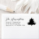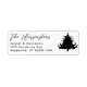 Return address labels in black and white. Black tree design and black text in script and printed text. Use the large script for a surname / family name, with space for up to three more lines as needed.