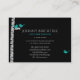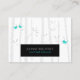 Eine Visitenkarte mit einem modernen, aber süßen rustikalen einzigartigen Design hat einen schwarzen Hintergrund mit Birkenbäumen und fallenden Blätter bevölkert.Niedlichen kleine türkisblaue Vögel und ein Paar blaue Liebe Pop vor dem schwarzen Hintergrund.Die Birkenbäume und die Blätter sind silbergrau und heben sich auf dem schwarzen Hintergrund hervor.