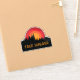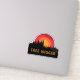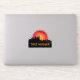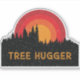 Farbige Aufkleber für Outdoor-Leute, mit einem bedrückten Sonnenaufgang (oder Sonnenuntergang) hinter einem Wald, und die Worte TREE HUGGER.