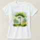 The image shows a watercolor painting of a natural scene. The painting shows a tree in the center, surrounded by green vegetation, grass, and red flowers. The style is soft and flowing, typical of watercolor paintings.