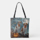 Entfesseln Sie den unheimlichen Geist mit diesem unheimlichen Halloween-Design, das eine Hundepackung unter einem dunklen, mondbeleuchteten Himmel bietet, umgeben von fliegenden Fledermäusen und glühenden Kürbissen. Ideal für diejenigen, die mit ihren wütenden Freunden eine Touch voller Furcht Liebe haben!