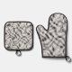 Trendgraue, schwarze Retro-Streifenmuster Ofenhandschuh & Topflappen-Set