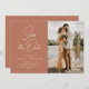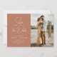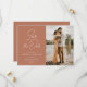 Terracotta Erdtöne weiße Typografie Design mit stilvollen modernen Schriften. Unsere schöne personalisierte Hochzeit speichern die Dattelkarten ein atemberaubendes Design, das jedes Hochzeitthema ergänzt. Auf der Vorderseite der Karte befindet sich ein personalisierter Text und ein schönes Bild.