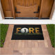 Golf Bad Badematte. Diese Badematte zeichnet sich durch ein humorvolles und stilvolles Design aus, das sich perfekt für Golfer eignet. Das Wort "FORE" wird in großen, texturierten Goldbuchstaben hervorgehoben, wobei die Silhouette eines Golfers in Aktion den Buchstaben "O" ersetzt. Ein Golfball und ein Putting Green mit einem Loch tragen zum Thema "Spielspass" bei. Die Badematte ist ideal für Sportler und eignet sich hervorragend für Golfer, ob zum Geburtstag, zum Vatertag oder zu Weihnachten. Das elegante und unterhaltsame Design ist ideal, um jedem Bad eine Touch Spaß und Persönlichkeit hinzuzufügen. Diese Badematte ist für jeden, der Golf Lieben hat, ein Muss.