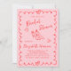 Trendy retro-inspirierte rosa und rote Brautdusche mit einem gewellten Rahmen, skurrile handgezeichnete Herzenzeichnungen und mit Coquette-Bögen geschmückte Brautkopfpumpen und "Brautparty" und der Name der Braut in einem lustigen, spielerischen Drehbuch.