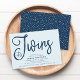 Feiern Sie mit dieser stilvollen Baby Shower-Einladung die Mama-to-be oder die zukünftigen Eltern mit den Worten "It's Twins" in trendigem, blauem Pinselskript vor einem hellblauen Hintergrund. Auf der Rückseite hat die Karte ein blau-weiß gespecktes Muster. Karo mehr Babydusche hier https://www.zazzle.com/rosewoodandcitrus/gifts?cg=196748758771183969?rf=238364477188679314 Personalisieren Sie es, indem Sie den Platzhalter-Text ersetzen. Für weitere Optionen, wie zum Beispiel den Schriftart zu ändern und ihn zu vergrößern oder zu verändern, klicken Sie auf den Button "Anpassen". *Bitte beachten Sie, dass das Zazzle-Wasserzeichen, das in der Zoomvorschau angezeigt wird, NICHT auf dem gedruckten Endprodukt erscheint. © Rosewood and Citrus