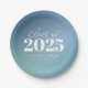 Die Trendy Class of 2024 Blue Gradient Abschluss Paper Teller zeichnet sich durch einen lustigen und hellen Farbverlauf in Blautönen, stilvolle Kalligraphie und Ihr Abschluss Jahr.