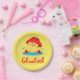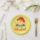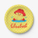 Ein niedlicher, gelber und weißer Polka-Punkt-Hintergrund, eine niedliche Ente, die in einer Pfütze Wasser spielt. Es gibt eine Vorlage zum Einfügen eines Namens unten. Bestellen Sie noch heute Ihre Teller! Polka Dots and duck, erstellt von: AMBillustrations http://www.etsy.com/shop/AMBillustrations/