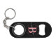 Girly, elegant, trendy, modern, rosa und schwarz, weiß monogramm Anfangsname Skript personalisiert mit Monogramm Schlüsselanhänger Flaschenöffner. Mit einem Monogramm-Initial- und einem gürtelhaften Namensskript in einem handgeschriebenen Kalligraphie-Schwanz-Schriftart und einem gepunkteten Kreisrahmen um Ihr Monogramm. Perfektes weibliches Geschenk für Mutter, Geburtstag, Freundin, Schwester, Hochzeit, Brautparty, süße 16 Geburtstagsparty, Schönheitssalon Besitzer, Mode Blogger oder alle, die hübsche moderne Stil Lieben.