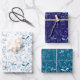 Trendy Hand Drawn Monochrome Blau & Weiß Urlaub Geschenkpapier Set