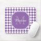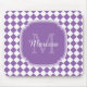 Machen Sie ein Spritzen mit diesem modischen hellpurpurnen und weißen geometrischen Diamanten überprüftes Fliesenmuster-Monogramm mousepad. Personifizieren Sie diesen stilvollen Entwurf, indem Sie Ihre Namens- und mit Monogramm Initiale addieren.