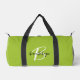 Diese personalisierte Duffeltasche ist mit einem Monogramm und einem Vornamen in modernem Schwarz-Weiß-Skript auf einem angesagten limiengrünen Hintergrund ausgestattet.