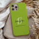 Dieses elegante personalisierte Handy-Gehäuse verfügt über ein Monogramm und einen Vornamen in modernem Schwarz-Weiß-Script auf einem trendigen limig grünen Hintergrund, mit dem vollen Namen unten in schwarz sans serif Schriftart.