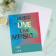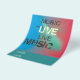 Trendy da draußen Musik Flyer, farbenfroh, blau aqua roter Fraktialhintergrund.Text darüber in verschiedenen Schriftart." Live Music ". am unteren "Wo" "Wann"