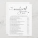 Fügen Sie Ihrem Brautparty eine Touch moderner Eleganz mit unserem Minimalistischen Brautparty-Spiel "Trendy" hinzu. Dieses Spiel ist so konzipiert, dass es Spaß macht und unvergessliche Momente schafft, und passt perfekt zu jeder schicken Dekoration des Brautparty, was es zu einem Muss für zeitgenössische Feste macht. Dieses Spiel mit einem raffinierten und eleganten minimalistischen Design stellt die Gäste mit unterhaltsamen Fragen über Braut und Bräutigam. Der bearbeitbare Text erlaubt es Ihnen, die Fragen so zu gestalten, dass sie mit der einzigartigen Geschichte und Persönlichkeit des Paares übereinstimmen. Dieses Spiel ist perfekt für Brautpartys, Verlobungsfeiern und Probe-Dinners geeignet und behalte den Gästen Unterhaltung und Mitwirkung und schafft so ein lebendiges Ambiente. Erschaffen Sie ein unvergessliches und stilvolles Brautparty mit unserem trendigen Minimalistischen Newlywed Brautparty Game. Bestellen Sie jetzt eine Touch Spaß und Eleganz zu Ihrem besonderen Event!