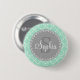 Trendy Mint Trellis Pattern Gray Monogram Button