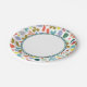 Farbenfrohe, zufällig verteilte Muster Bio Formen im Flat Design Stil. Crescents, Blüten, Blätter, Fußspuren und Flecken in trendigen Farben rot, grün, blau, orange, gelb und gold. Trendy Moderne Bio Gemusterte Teller.