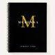 Trendy Modern Monogram Black Gold Erstname Notizbuch