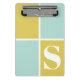 Moderne, gürtliche, monogramm-Miniklipboard in pastellblau-gelb-geometrischem Quadratmuster.