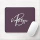 Trendy Plum Lila Grau White Script Monogram Mousepad