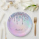 Trendy Rainbow Glitter Drips Holographic Pappteller