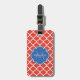 Ein trendiger, orangefarbener, marokkanischer Gepäckanhänger mit einem blauen Abzeichen, den Sie personalisieren können, indem Sie Ihren Namen und Monogramm zuerst hinzufügen. Dies ist Teil der Sammlung Cherry Tomato und Palace Blue Spring Quatrefolien