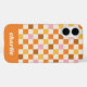 Machen Sie eine kühne Aussage mit diesem individuellen Gehäuse mit einem trendigen Schachbrettmuster in lebhaften Orange-, Rosa- und Cremefarben. Personalisieren Sie es mit Ihrem Namen in einem lustigen Retro-Schriftart für eine spielerische und einzigartige Touch. Dieses Gehäuse ist perfekt als Geschenkidee für jemanden, der kühne, Retro-inspiriert Designs Liebe. Es kombiniert einen auffälligen Stil mit einem dauerhaften Schutz.