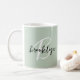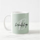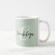 Diese elegante personalisierte Kaffee-Tasse zeichnet sich durch ein Monogramm und einen Vornamen in modernem Schwarz-Weiß-Skript auf einem sage-grünen Hintergrund aus.