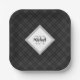 Trendy Schwarz-weiß tartan Personalize Monogram Pappteller