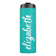 Türkisfarbener Thermalwäscher mit Ihrem Namen in Weiß ist ein großartiges Brautjunggeschenk, Junggeselinnen-Abschied Geschenk oder Geburtstagsgeschenk. Mehr Farben für Sie in unserem Shop und mehr Geschenkideen.