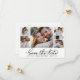 Elegante Minimalistische 5 Foto Collage Wedding Save The Date Cards, die ein modisches Kalligrafieschrift und ein ausgeklügeltes in Schwarz und Weiß präsentieren. Diese Kollektion ist speziell für moderne Hochzeiten konzipiert, die einen zauberhaften und romantischen Reiz ausstrahlen. Mit einer anmutig arrangierten 5-Foto-Gitterkollektion und einem handgeschriebenen, geschwaschenen Schwanz-Schriftart erfassen diese Karten das Wesen zeitgenössischer Eleganz. Sie können jede Karte leicht anpassen, um Ihren einzigartigen Stil zu reflektieren, indem Sie hochgeschätzte Details und Bilder der Hochzeit mit einem raffinierten und raffinierten Mittel, um Ihren außergewöhnlichen Tag zu verkünden und zu feiern.