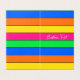 Das moderne Design der soliden Streifen mit gestreiften Linien in soliden Farben überlagert mit eigenem Text. Der benutzerdefinierte Text kann für einen besonderen Gruß oder Namen oder einen anderen Text nach Bedarf personalisiert werden. Es kann auch für ein Stripmuster ohne Wörter entfernt werden. Die kräftigen Farben sind leuchtende Neonfarben von Rosa, Gelb, Orange, Grün oder Blau, verwoben mit dünnen schwarzen Linien.
